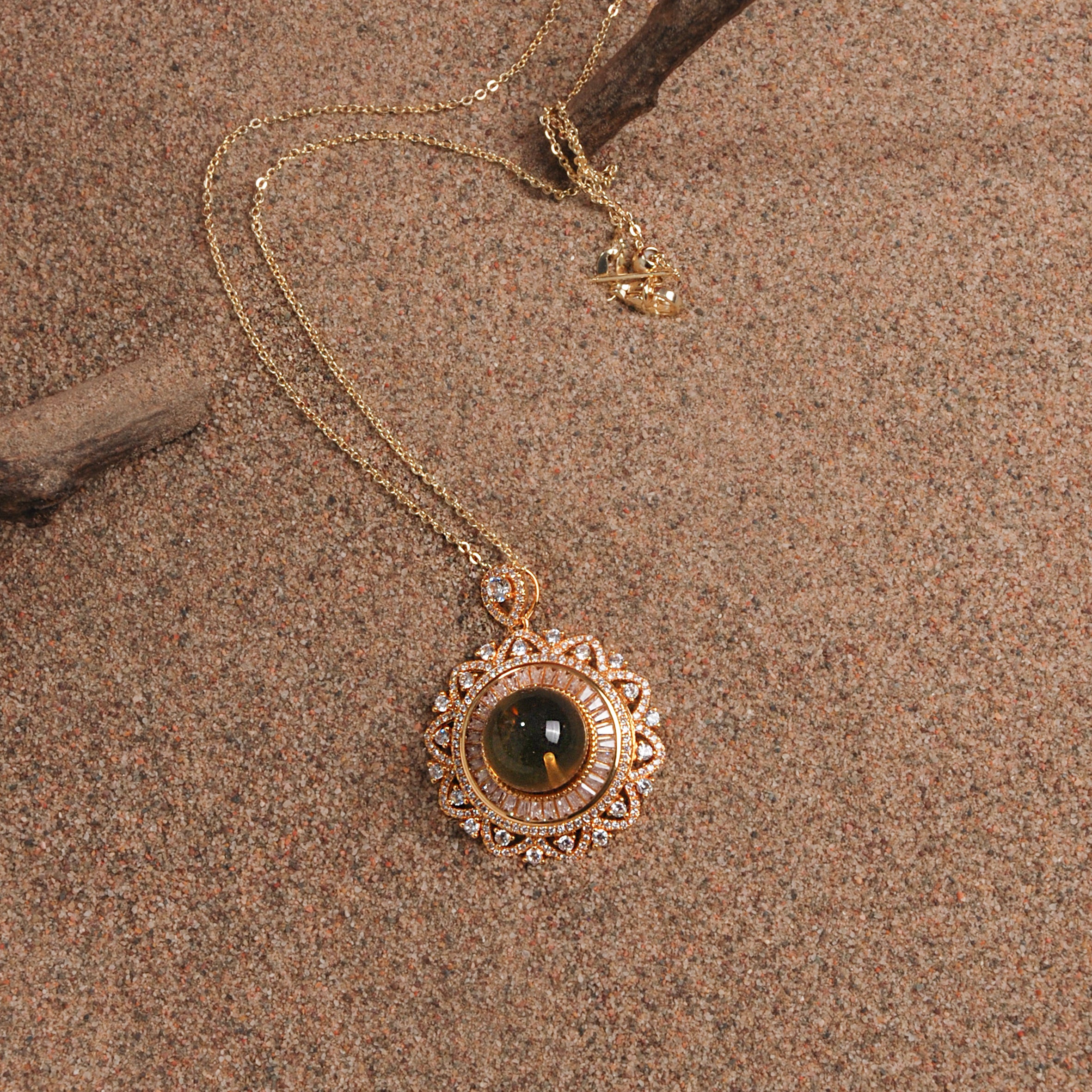 Material: Blue Amber, Gold-Plated Silver