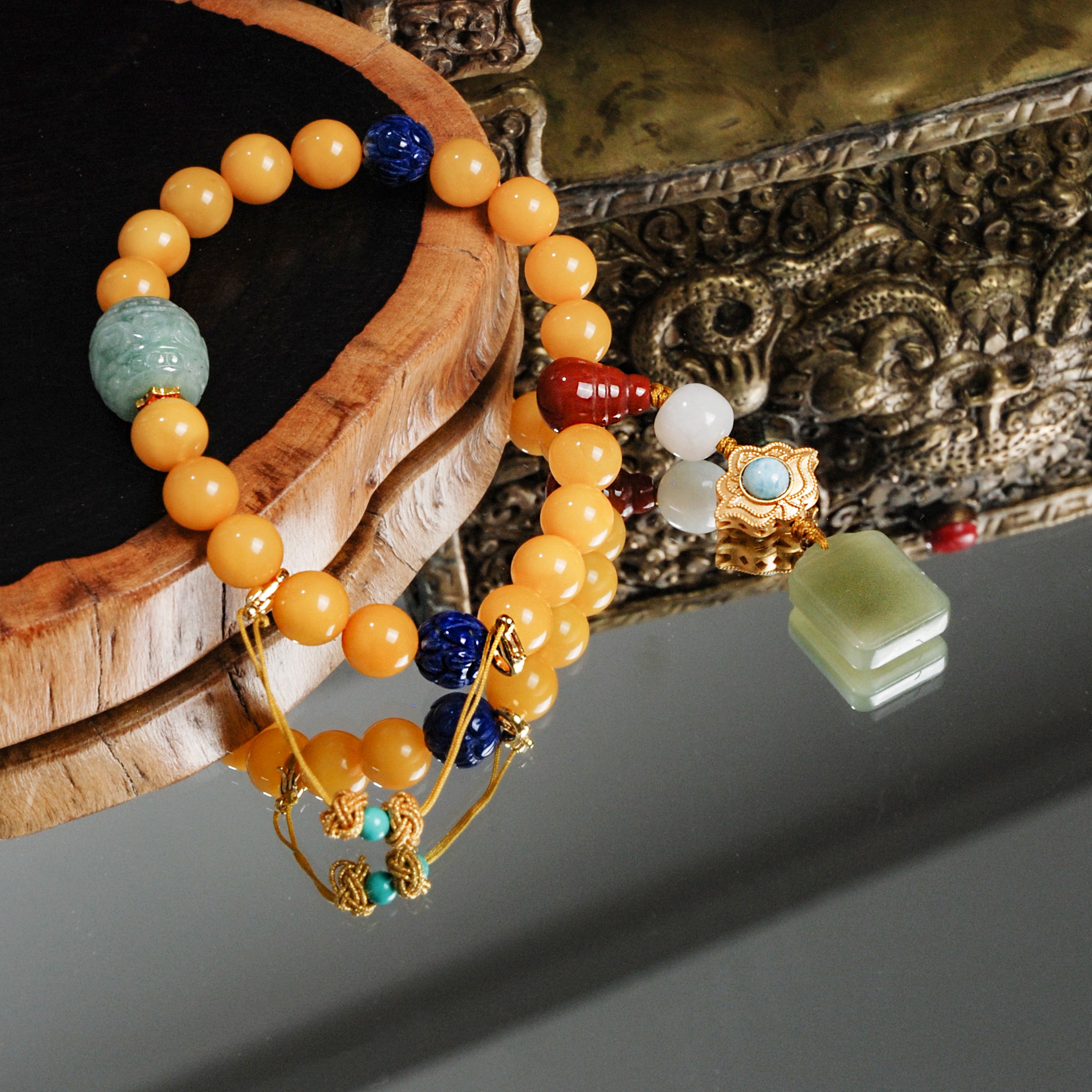 材质:青金石 和田玉 蜜蜡